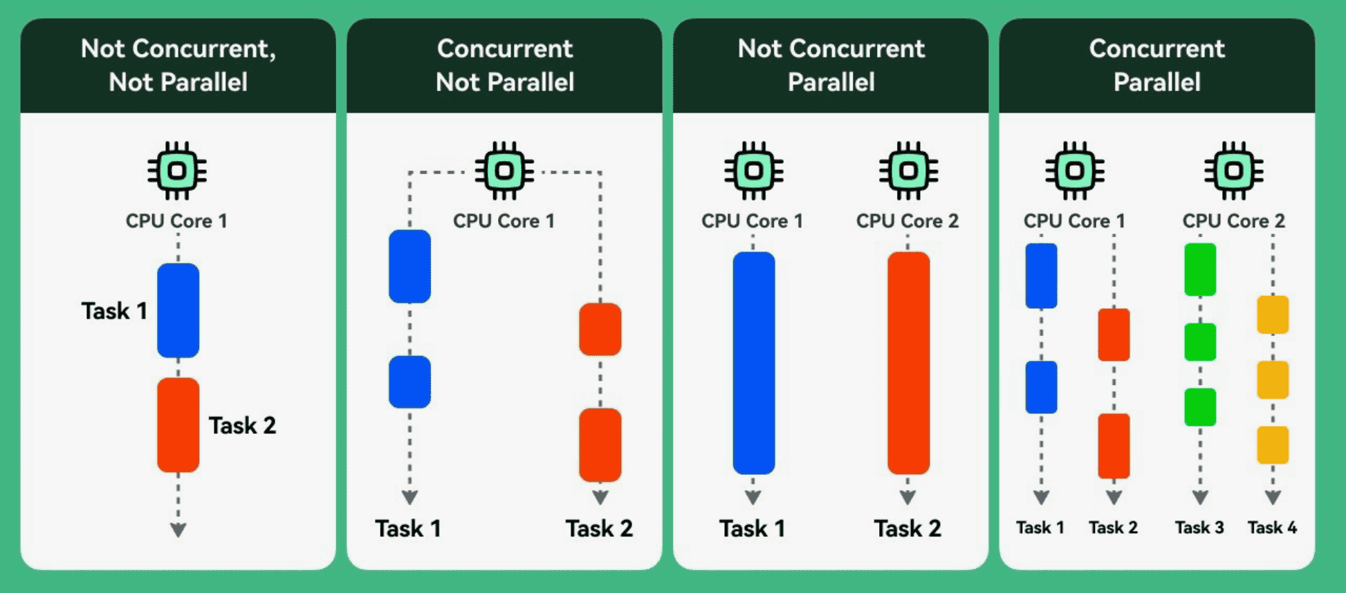 Мы будем трогать Concurrency, так как мы не будем сильно зацикливаться над количеством ядер. Нам нужно только научится запускать независимые потоки выполнения